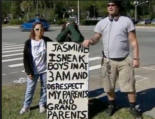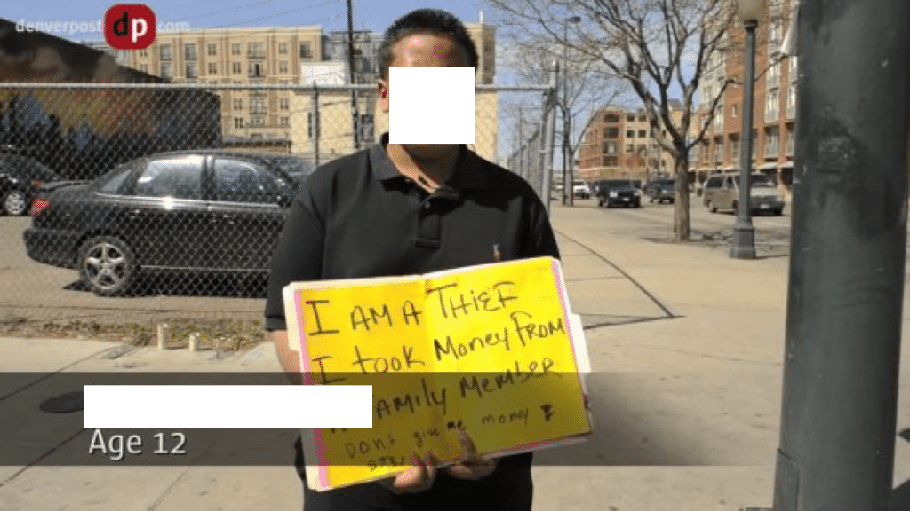 Umieszczam tylko pięć pierwszy zdjęć na jakie trafiłem, ale wystarczy wpisać w Google public shaming (publiczne zawstydzanie) i wyskakuje nam kilkadziesiąt takich zdjęć, w których to rodzice znęcają się nad dziećmi w bardziej lub mniej wysublimowany sposób.